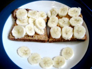After a long night filled with cold sweat breakouts, husband made me a cinnamon raisin peanut butter toast with banana smiley face. If that’s not love…
