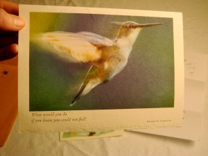 Of course Claudette would send me a hummingbird.  She’s just one of those people who gets it.  Magical.