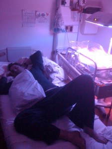 What happened? Apparently my blood type (O Positive) is incompatible with Ian’s blood type (A Positive) and my antibodies were attacking his in utero.  This condition, paired with the fact that my milk hadn’t come in yet so his system couldn’t be flushed, made the severe jaundice inevitable.  Enter uncontrollable sobbing.