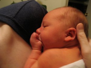 Ian was born on Saturday.  Sunday night the midwife came to check on him and we both remarked that he looked a little jaundiced.  Ironically, Monday afternoon I had scheduled a consultation with a pediatrician (Ian was due January 18), and I called that morning to let the office know that A. I had had the baby and B.  I think he’s jaundiced.  Husband had to go to the doctor without me as I was under strict orders not to climb or descend any stairs for 2 weeks due to my lady stitches.