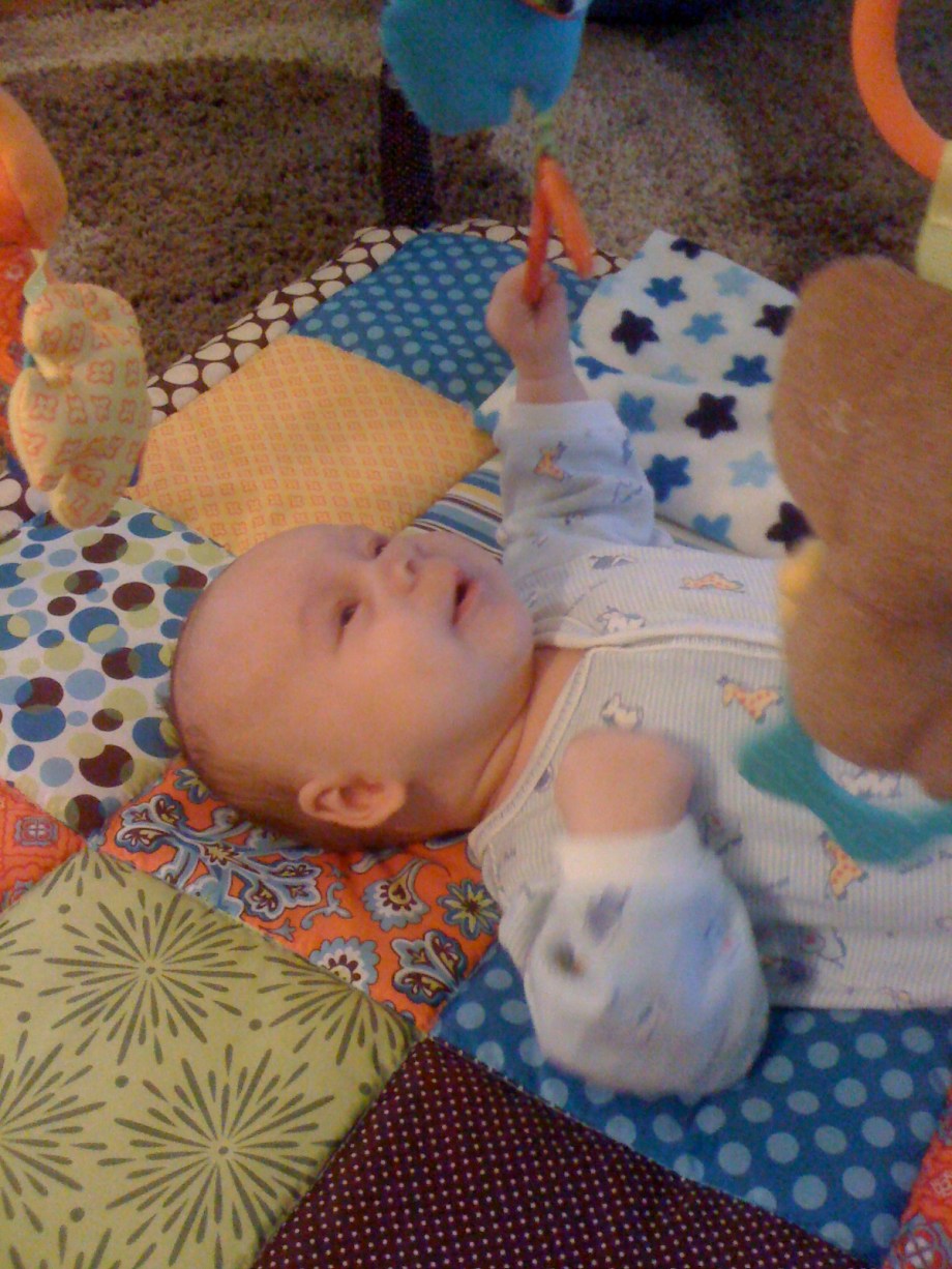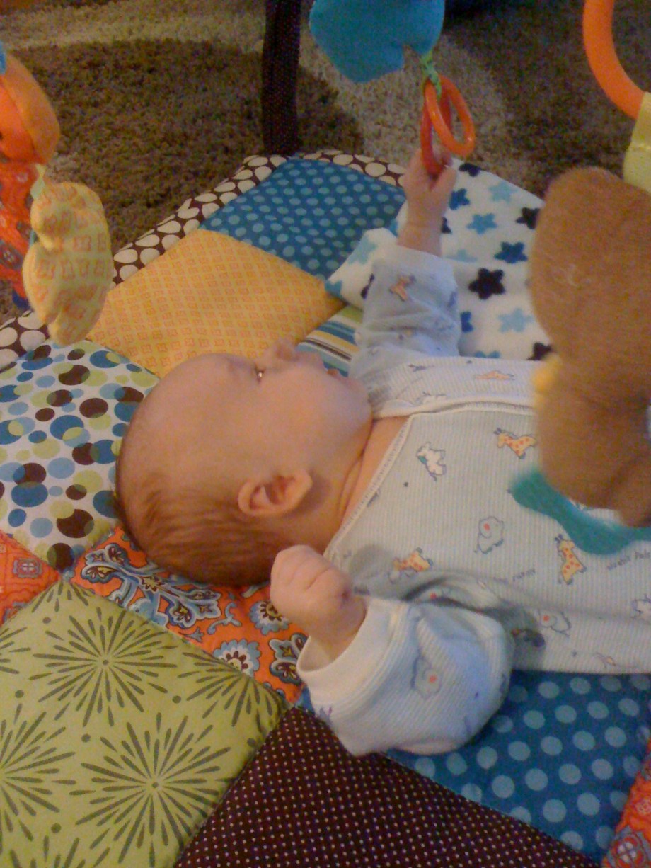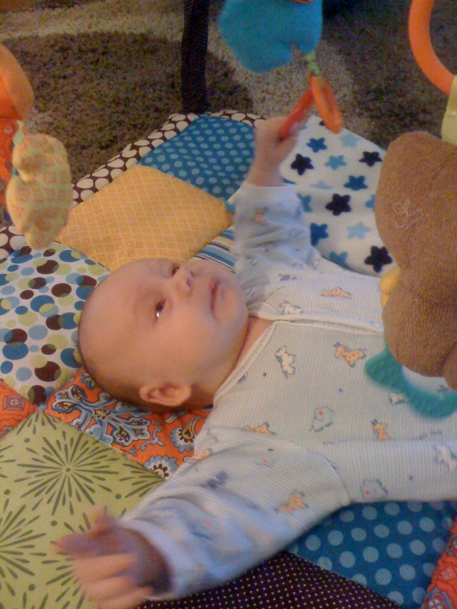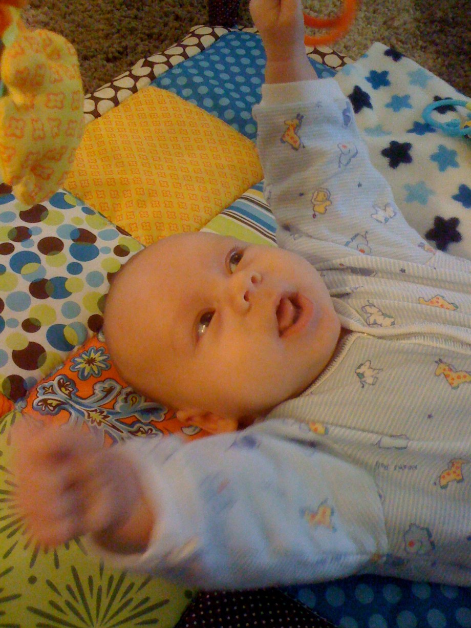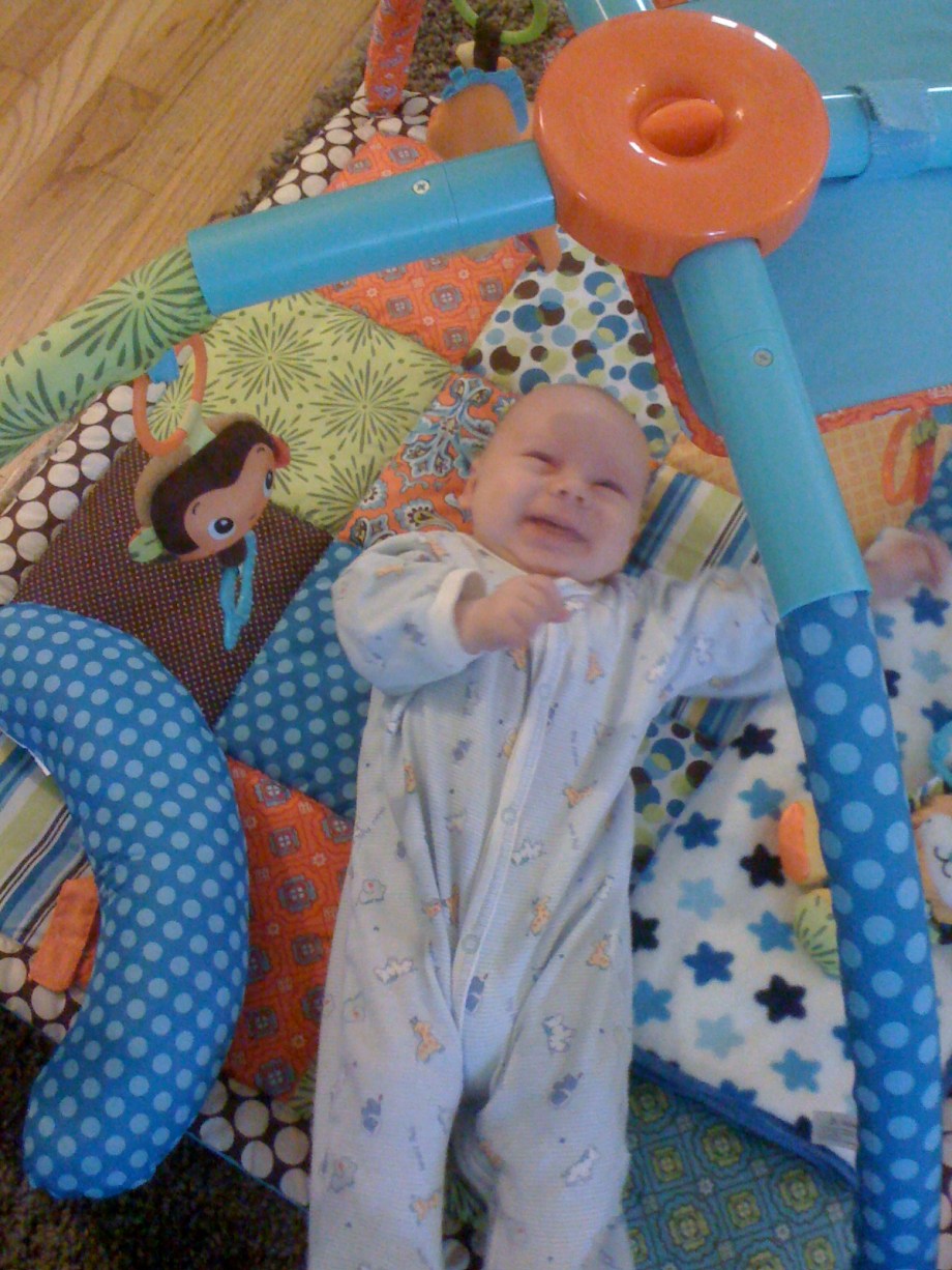 You start the day with a healthy breakfast.Then you decide you like the Activity Gym.Must put fist in mouth. I'm opening my mouth as wide as I can.Hoooray for the Activity Gym!Gurgle gurgle coo coo.What happened?I grabbed the ring! Whatever that means...The ring is not letting go...I'm happy/freaked out.Well, you know where to find me.