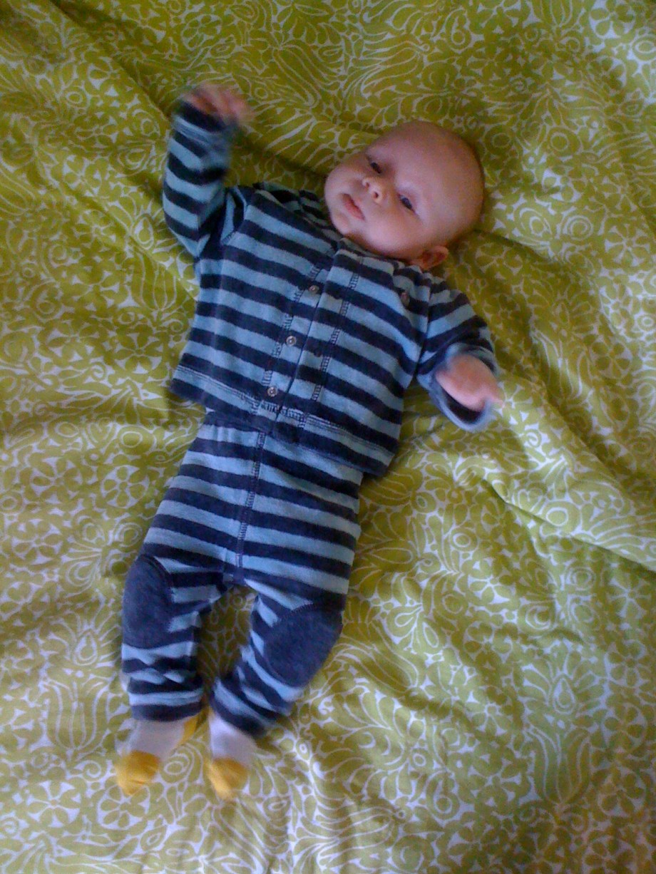Ian is asleep. In his co-sleeper. Unswaddled. No swing.