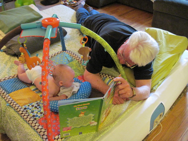 1. Love it. The green hat makes him look like a pea pod. I need that pattern. The g-parents look great!