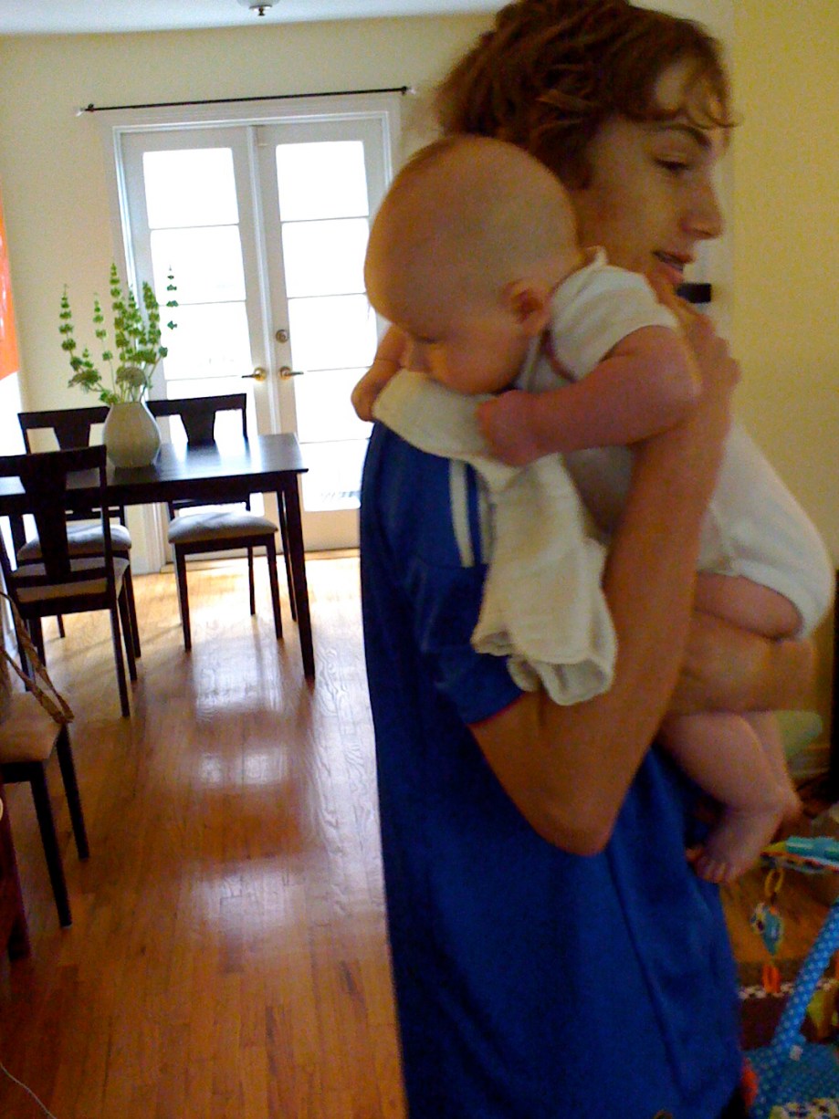 Yes, the swaddle is still a crutch I suppose, but at least I can take a swaddle with me…the swing ain’t gonna go to Michigan with me, and they don’t make swings for toddlers (do they?). I just hope Ian’s wife won’t have to swaddle him in a queen-size sheet before he goes to bed…