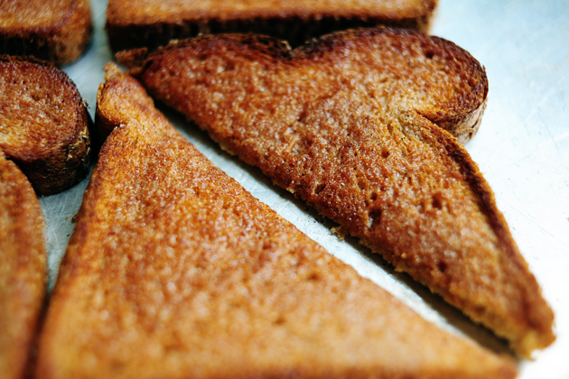 Next, examine each slice to determine which has the most buttery sugary goodness, and which has the least (is there a super soaked part where the bread is ready to fall apart?  Is there a too toasted part that barely has any Crock on it? This is important). Eat your toast middles in order of least drenched to most drenched.