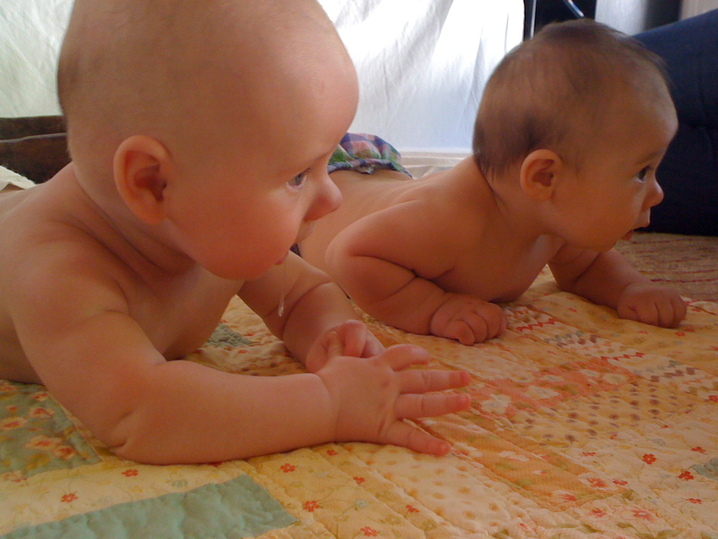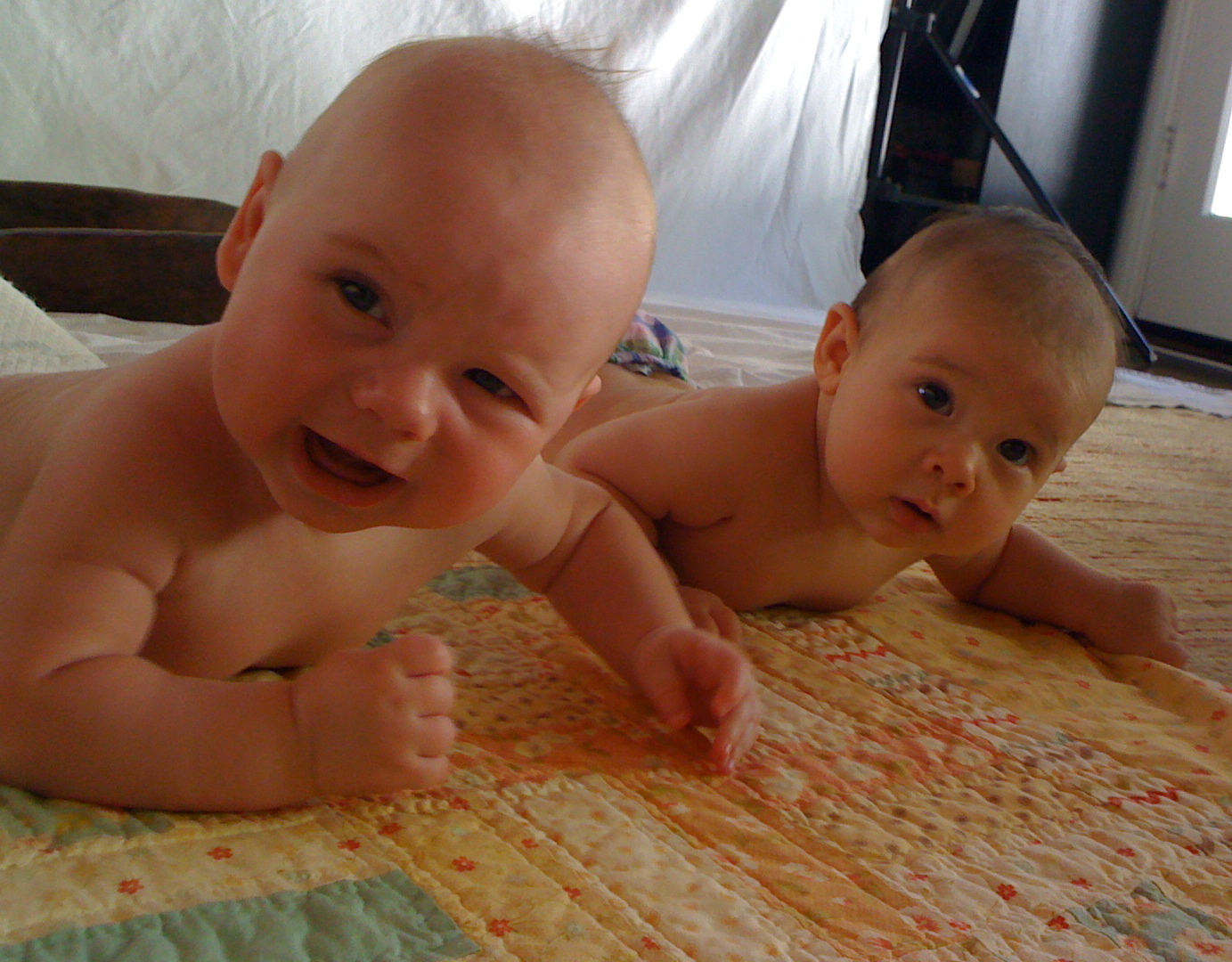 Too cute. I love the double baby photo shots and what a beautiful quilt. Kristin is one amazing. Breastfeeding and photo taking. Very impressive. 🙂
