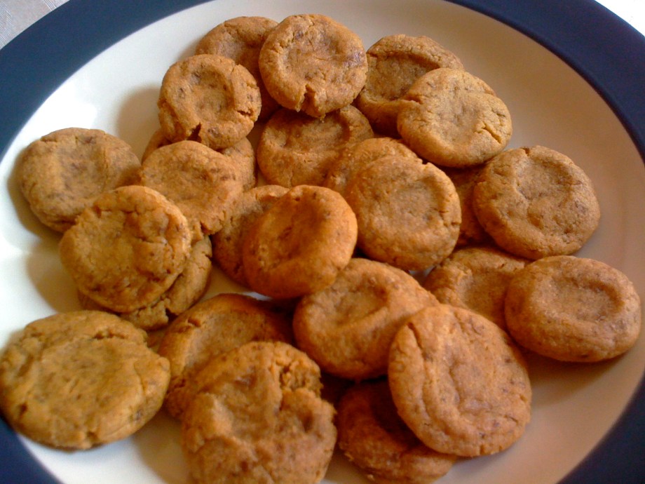 Roll about one-inch balls of the dough and place on a sprayed cookie sheet, or a cookie sheet lined with parchment paper. I like to do thumbprints, but you can flatten however you see fit. Go crazy.