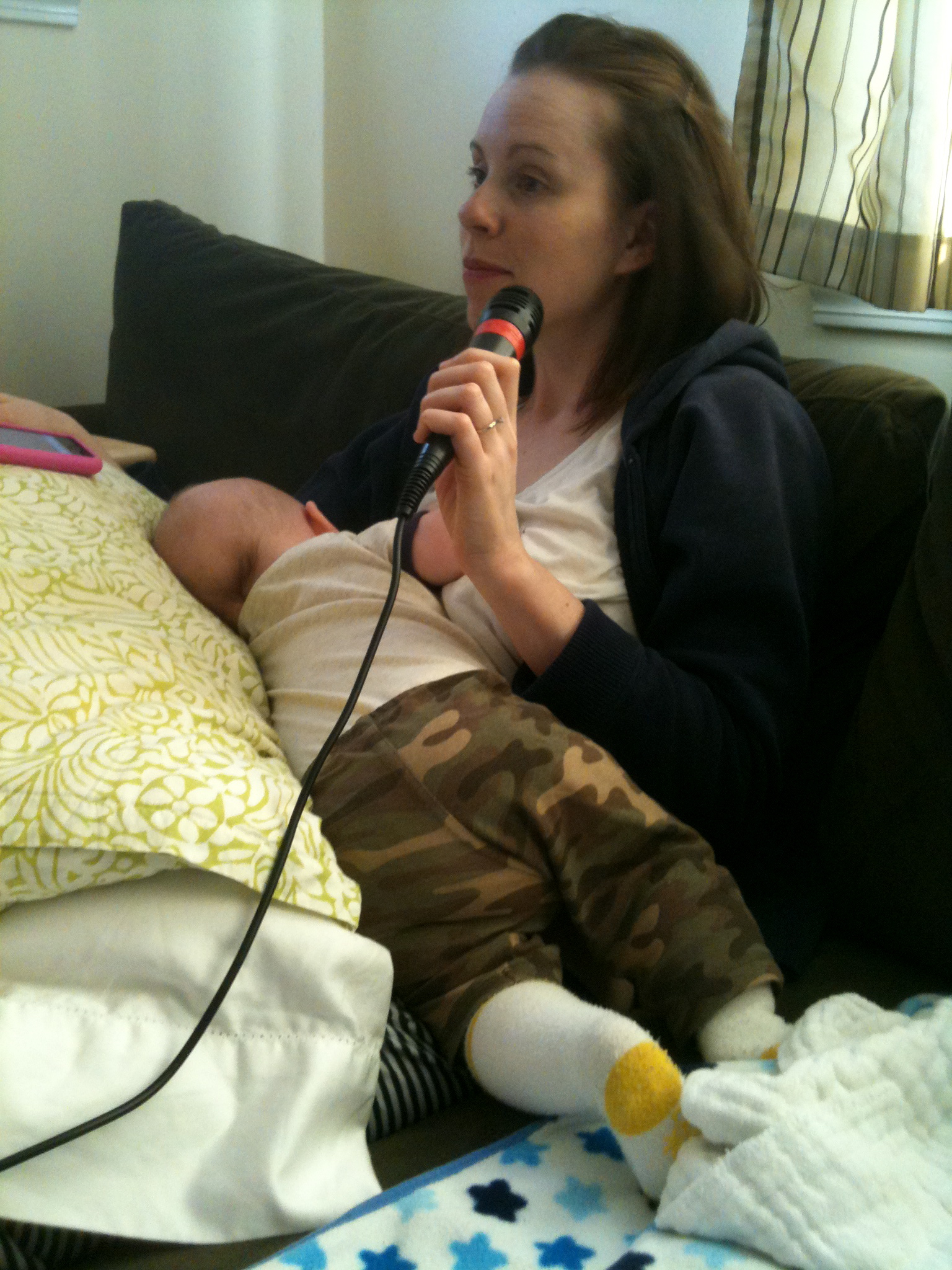 He nursed at 8:30pm, I put him down in his crib, and he slept until 3:30am. I nursed him and put him down, and he talked, then squawked a bit. I sang him a lullaby from the futon, and he would quiet down again. After about 45 minutes of occasional squawking (I could tell he was trying to get himself to fall asleep), he cried out. I peeked into the crib to find him curled up on his tummy with his legs tucked underneath him, and his blanket at the other end of the crib. HE WAS COLD, DUMB MAMA! I covered him up and he promptly passed out. Duh.