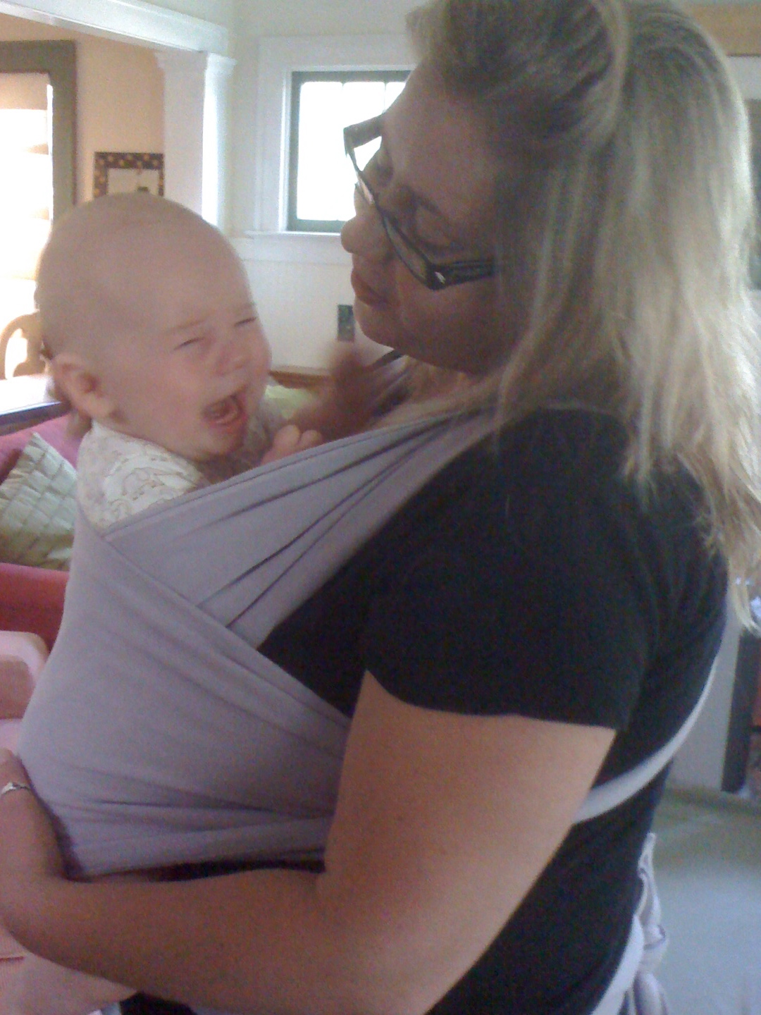 Mom showed Aunt Courtney how to use the Moby. I wasn't in a Moby mood.
