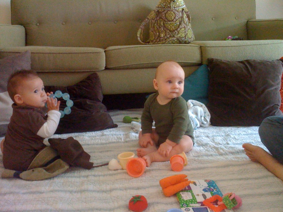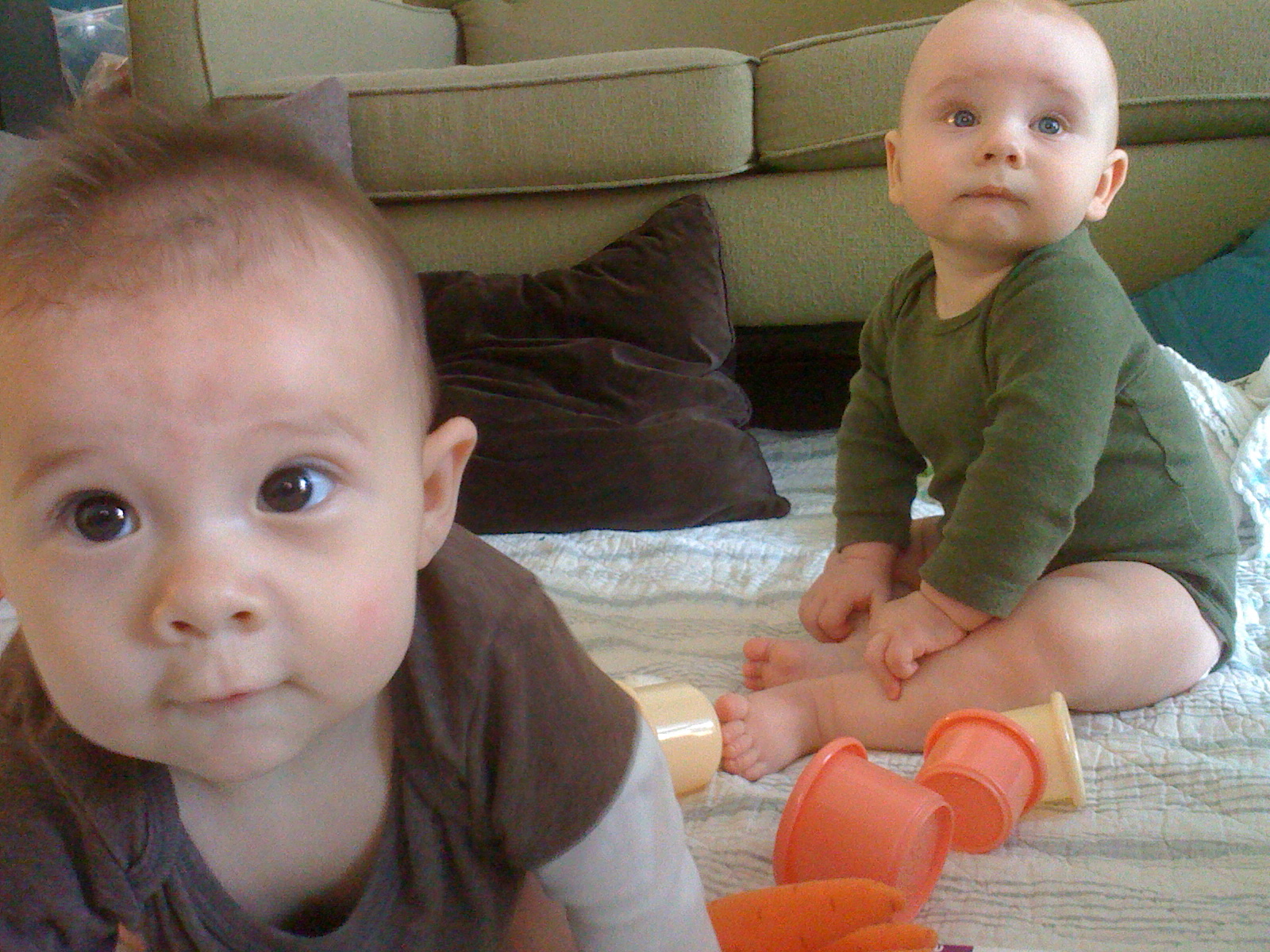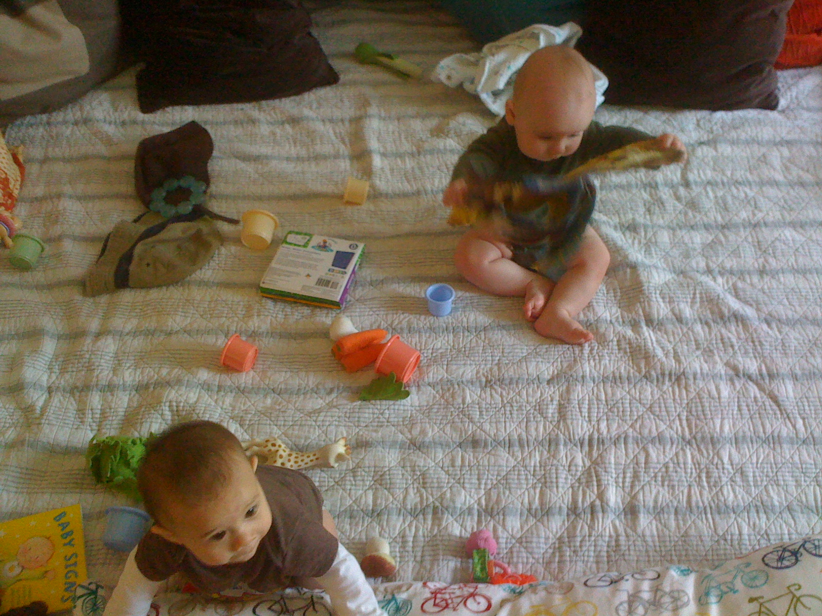I was so excited, I had to take a nap.Just two sitting up babes, watching a little Nick Jr.Mila discovers my mom's pink phone.Mila likes pink.Mila likes phones.A girl after my own heart.Ian's practicing reading the Sunday paper (yeah right, he's gonna be like, "What's the Sunday paper?").