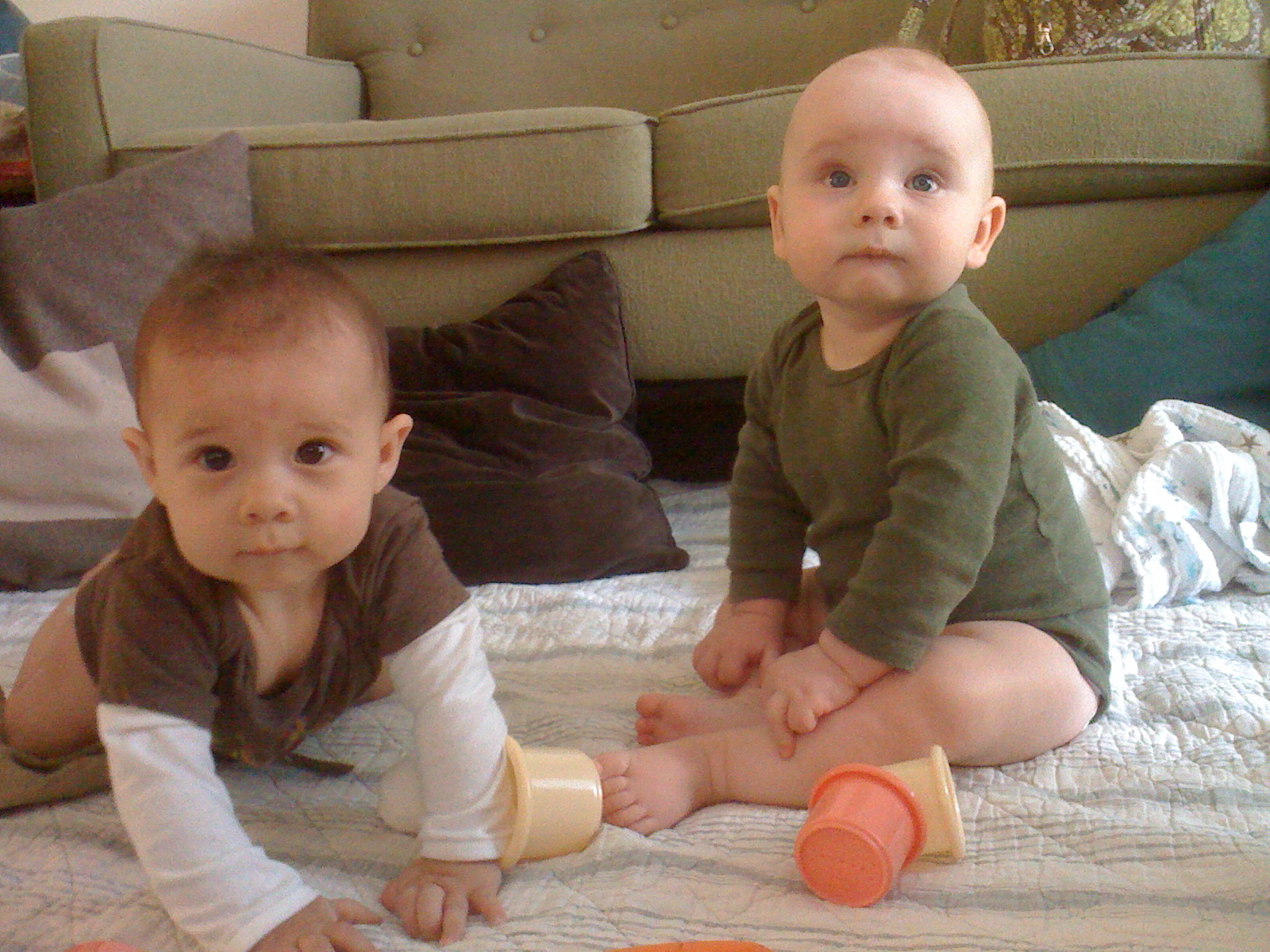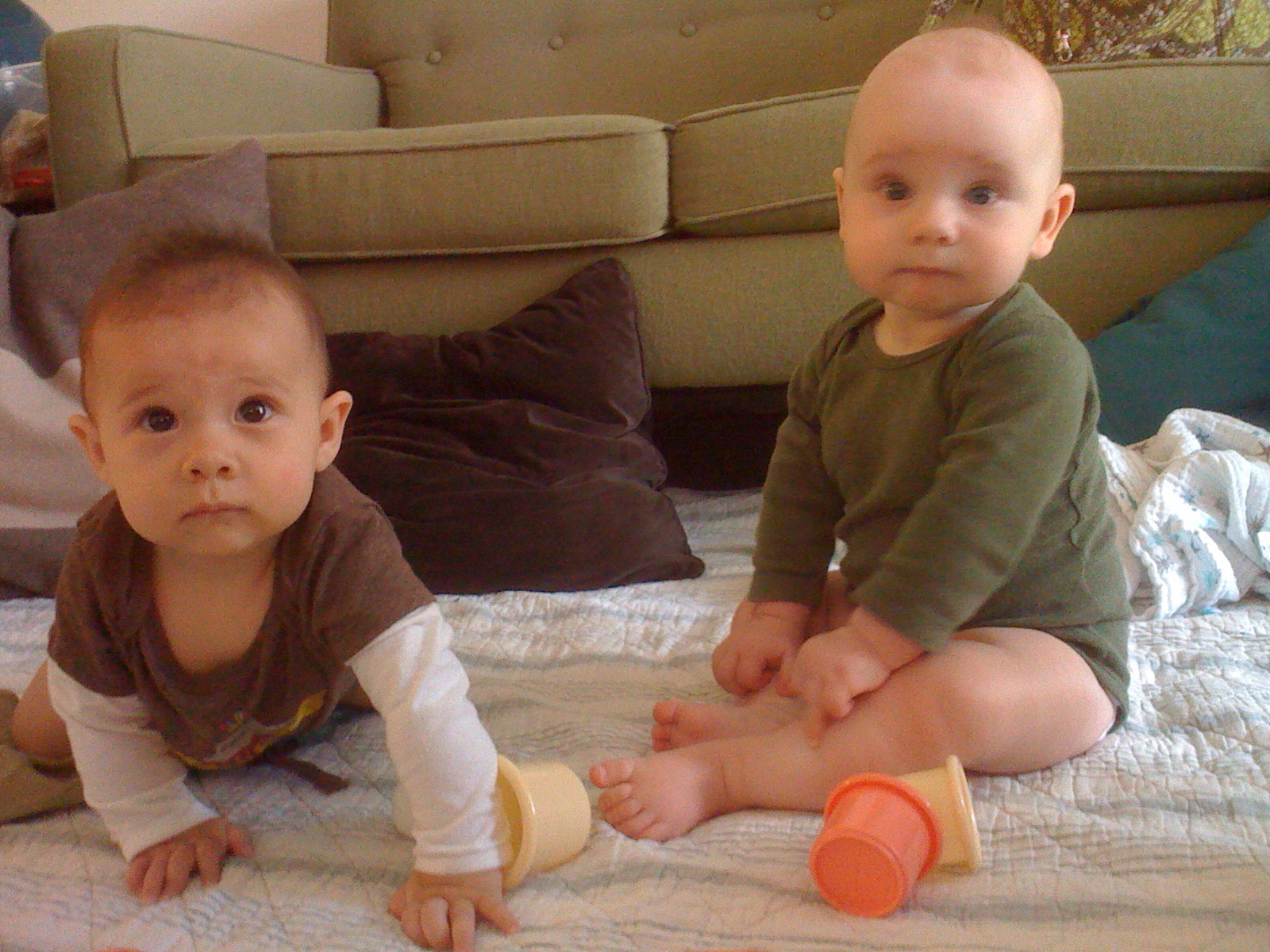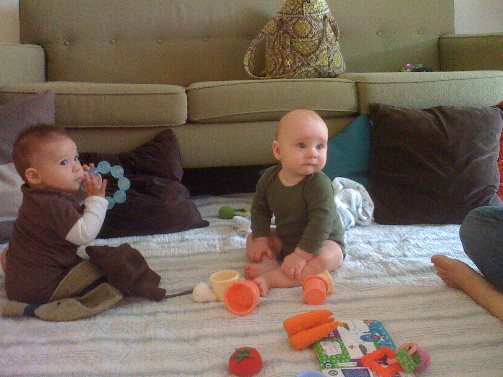 I was so excited, I had to take a nap.Just two sitting up babes, watching a little Nick Jr.Mila discovers my mom's pink phone.Mila likes pink.Mila likes phones.A girl after my own heart.Ian's practicing reading the Sunday paper (yeah right, he's gonna be like, "What's the Sunday paper?").
