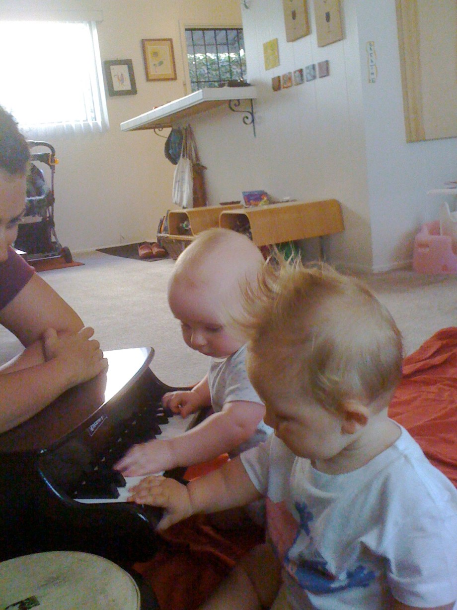Introducing Bodhi Ian's here! Ian's here! Get me outta this Bumbo! There Ian goes, using his toungue braille reading skills again. Show off. Bodhi's hair totally wins. Remember when we just layed on the floor and did nothing? That's so weird! I know, right? We wrapped up the afternoon with a little piano duet. Mama Ash was an excellent tipper. Our sound is a mix of improvisational jazz, lullaby, and hip hop. Perfect for naps or a cranky diaper change. Spread The Love Share on Facebook (Opens in new window) Facebook Share on X (Opens in new window) X Email a link to a friend (Opens in new window) Email Share on Pinterest (Opens in new window) Pinterest Like Loading... Related