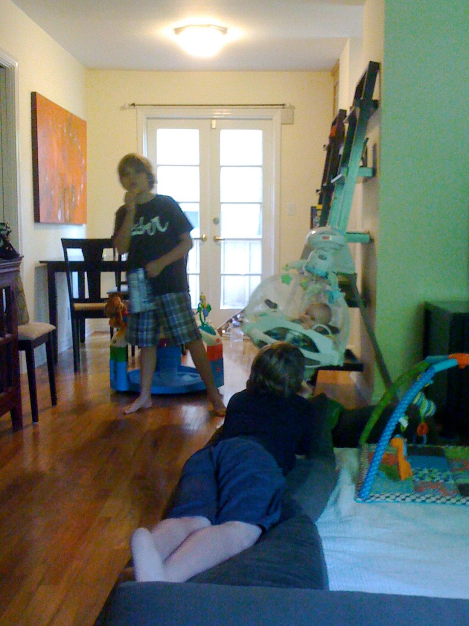 He was over tired and over stimulated from all the fun with his Aunt Angie and cousins Grant and Gannon. We did our usual bedtime routine (diaper change, story, feed), but he was almost instantly crying when he was put into his crib.