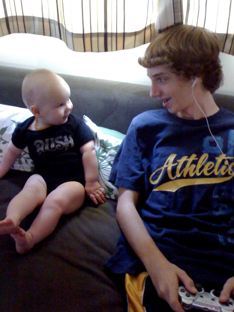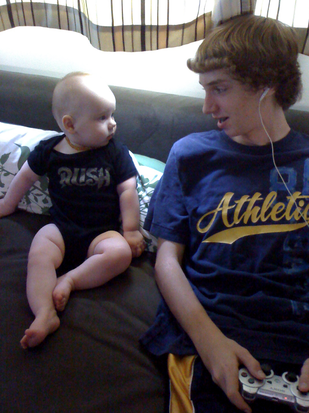 Brudders I wore my Rush onesie just for you. Haven't even barfed or pooped on it. Yet. You have a very delicious-looking wire coming out of your head. Studying Fifa soccer. Spread The Love Share on Facebook (Opens in new window) Facebook Share on X (Opens in new window) X Email a link to a friend (Opens in new window) Email Share on Pinterest (Opens in new window) Pinterest Like Loading... Related