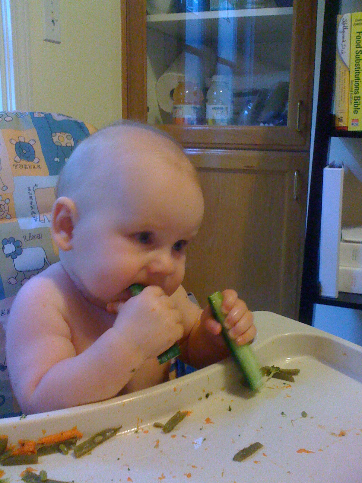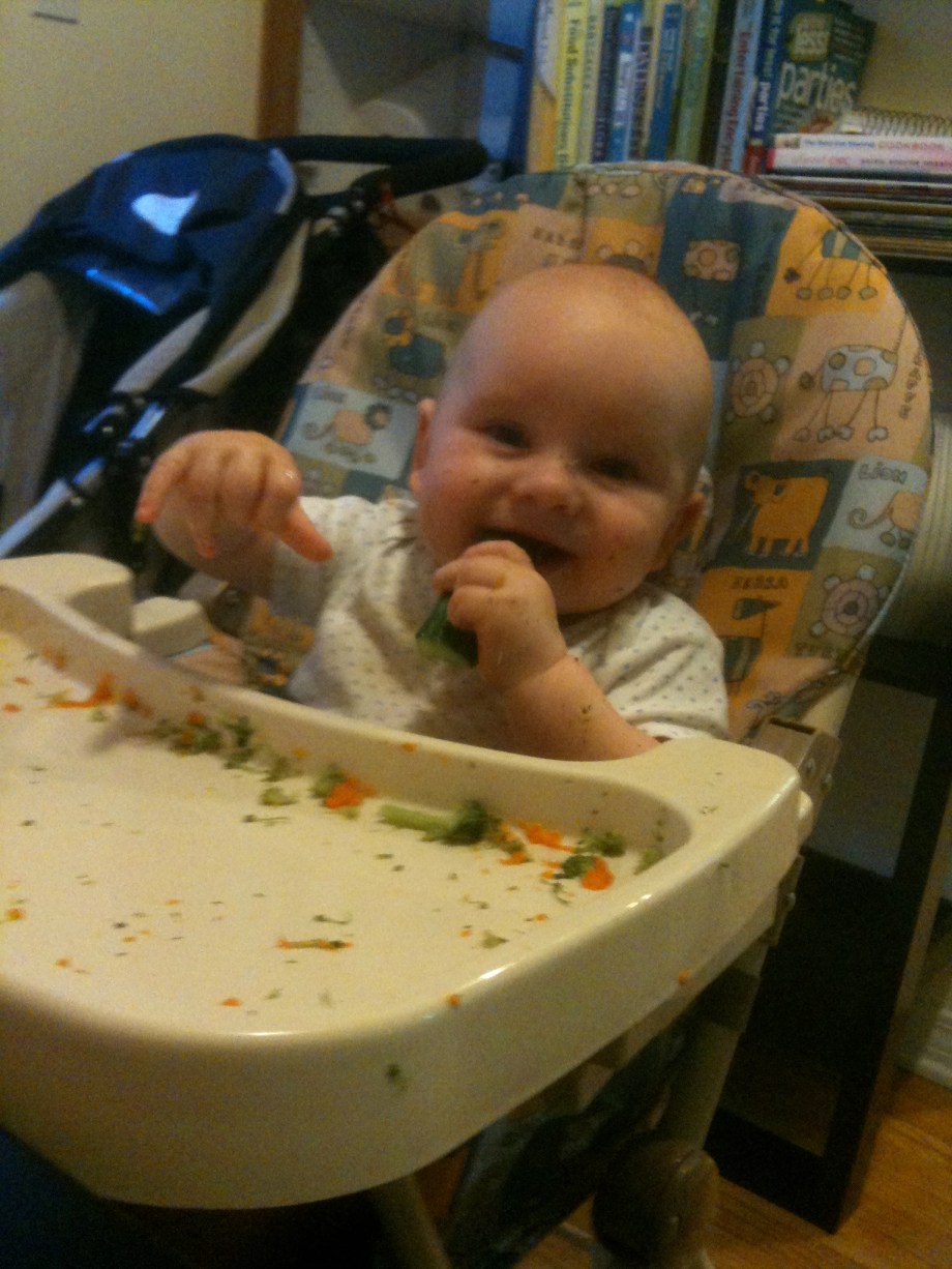 Um, yea…don’t really want to start processed grains or meat or dairy yet…feel like an asshole not feeding my kid, though, even though he seems like he could care less and is clearly not wasting away on my milk alone…just another thing to feel guilty/pensive about.