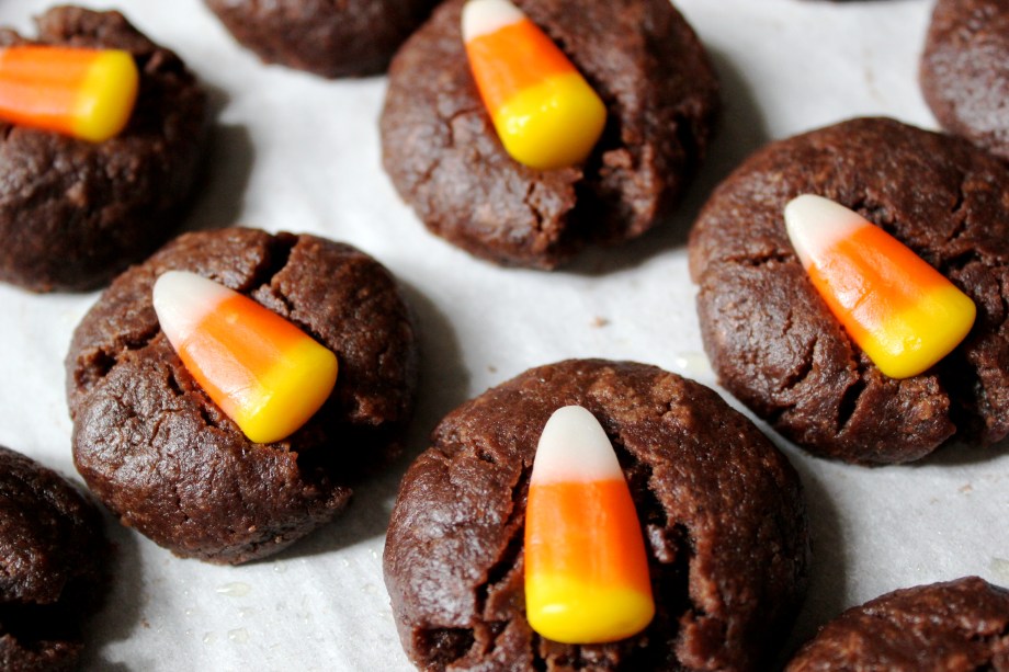 While he “playte,” I made vegan Nutella cookies with candy corn. Recipe found here (I subbed the egg with a “flax egg” which is one tablespoon ground flax mixed with three tablespoons of water).
