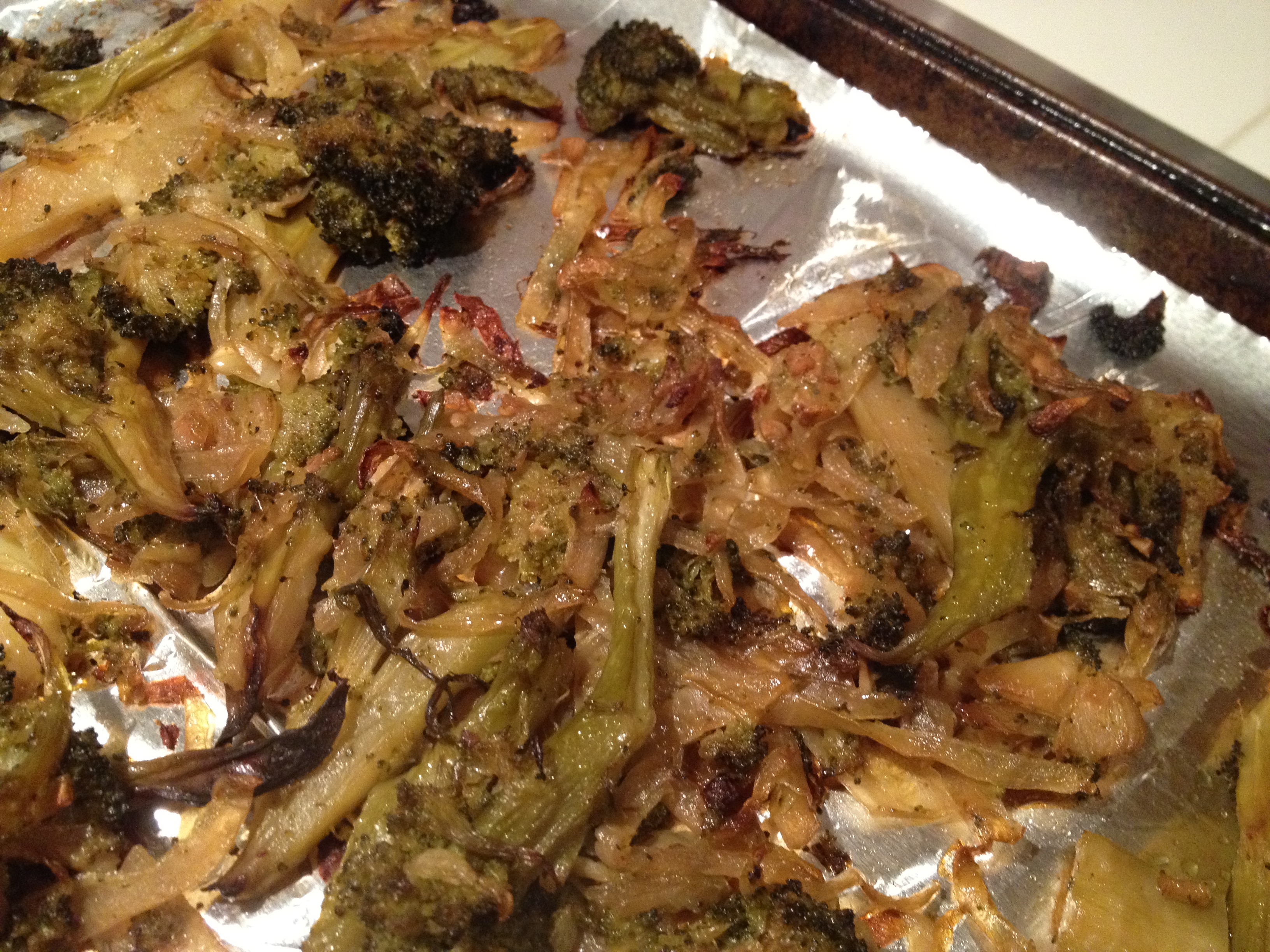 This broccoli obsession is courtesy of my friend, Krista. She makes this AMAZING slow-cooked broccoli dish that I’ve tried twice to make and failed. But I think I’ve found a method that works for me. I dump a big bunch of blanched broccoli (long pieces with plenty of stem attached, just make sure to peel a bit if it’s woody), 6 cloves of sliced garlic, 1/2 tsp red pepper flakes, 1 tsp salt, and 1/3 cup olive oil in a crock pot and let it go for 4 hours. If it’s not where you want it (carmelized, soft, but still holds it’s shape, and not a lot of liquid-this has alluded me thus far), drain liquid, put broccoli on baking sheet lined with parchment paper and roast at 375 degrees until you get that deeply brown, lacquered looking broccoli, about 20-30 minutes.