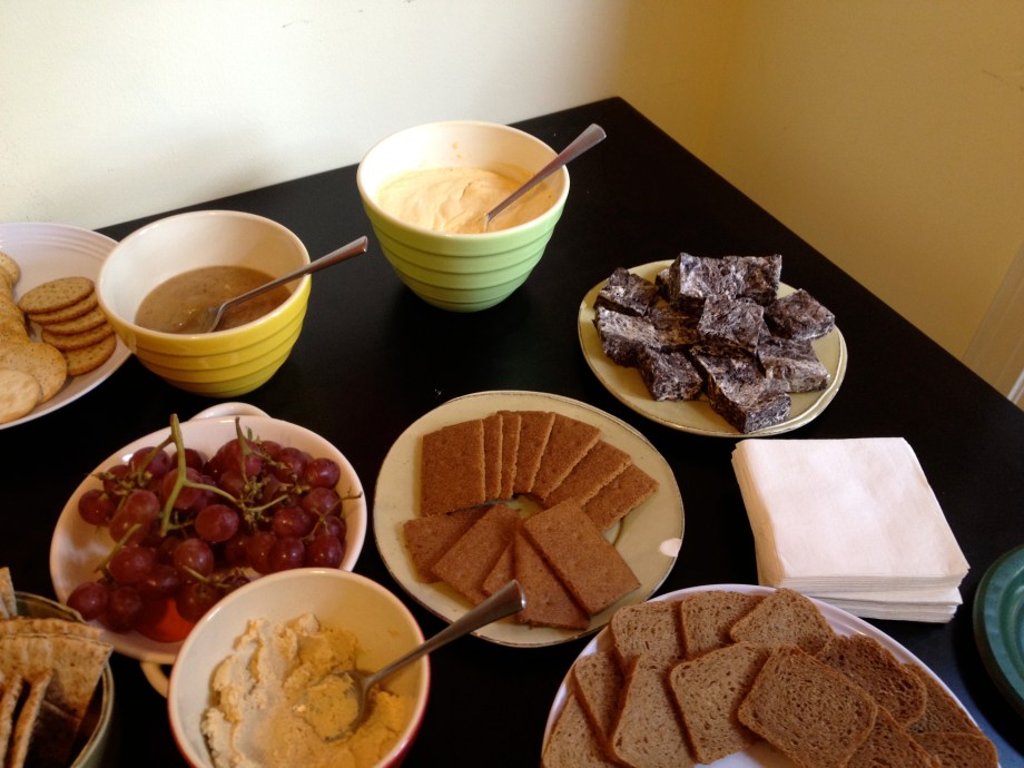After thoroughly enjoying Gratitude Cafe, I decided that in this age of barely seasoned food for babe, the trick to tasty eating for the adult palette is all about sauces, spreads, dressings, and condiments. Making our own hummus is only the beginning…