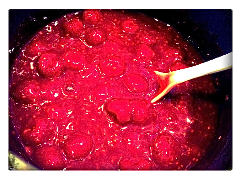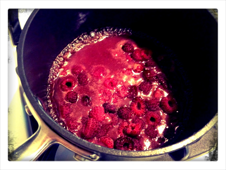 Remove from heat and stir in the fresh raspberries carefully, leaving berries intact.