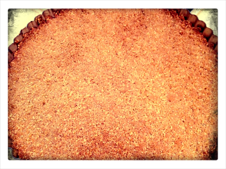 Combine almond meal, honey, oil, and salt. Mix with fingers until it’s crumbly. Press into a greased tart pan. Bake for 20 minutes or until golden brown. Set aside to cool.