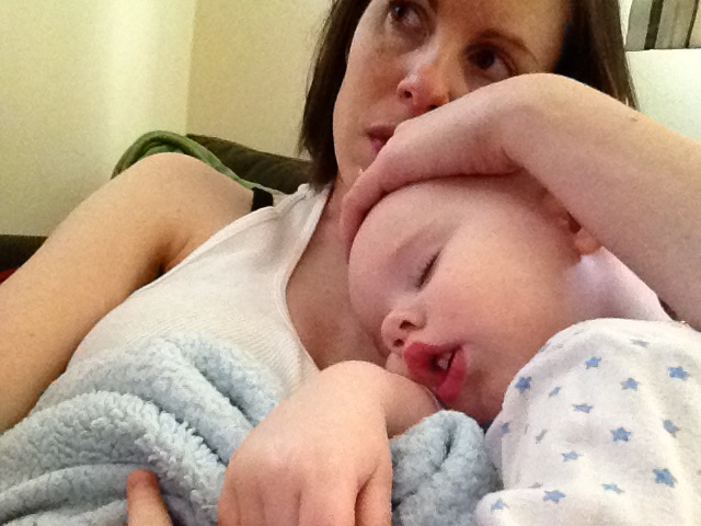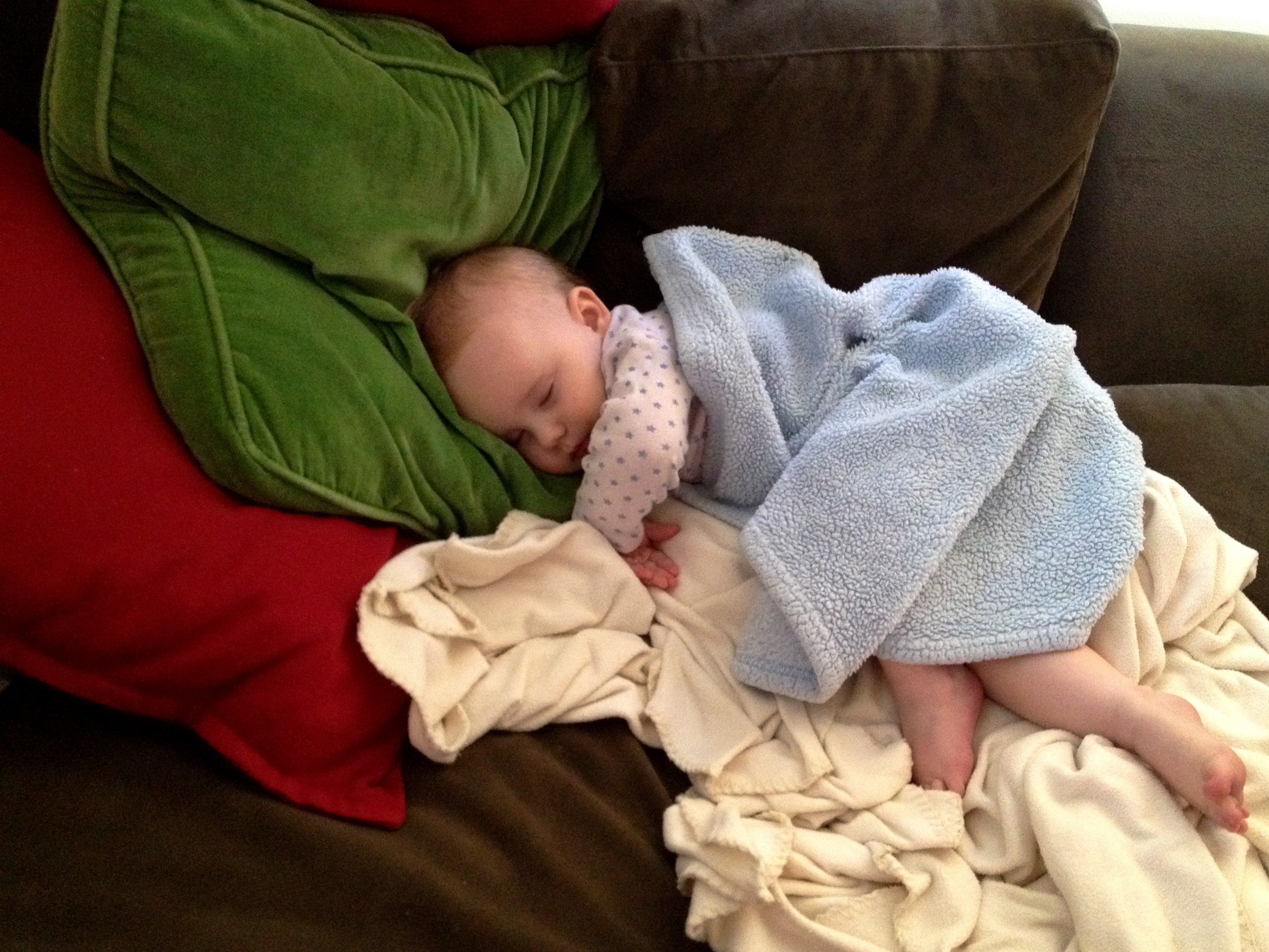 The only upside of a babe conked out from a fever is you get the snugly-mellow version to lounge with all day. He wasn’t fussy at all. Just wanted to be held…felt like I had a little newborn.