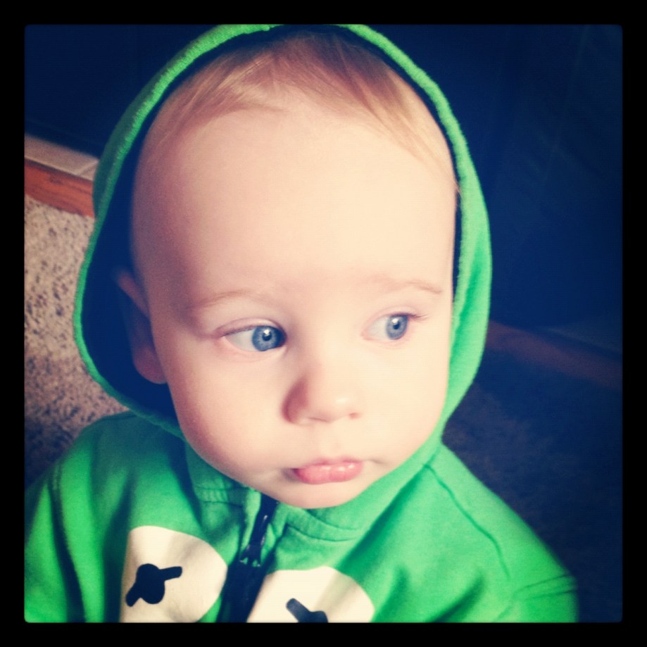 Thank God I took this picture. My plan was to photograph the green cornbread I was going to make for all my boys (husband, uncle Dirk, Austin & Ian) but then I went to get a massage from Juli and Austin had to get home early and the day just got away from me…so we have Ian in his Kermit sweatshirt, sucking in his cheeks. Making his fish face.