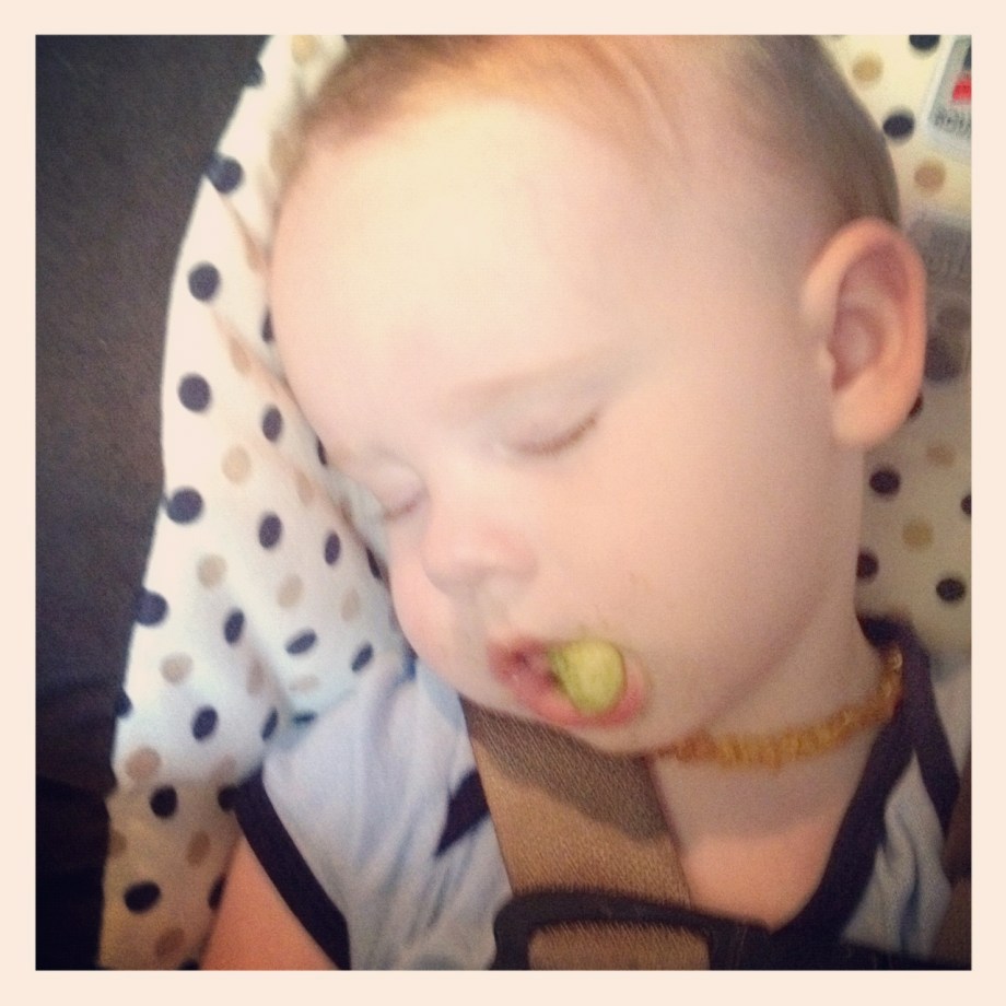 When Ian’s on the verge and we have a car ride between us and naptime, I will do the following: Windows down, gangsta rap up, and feed a snack to him piece by piece. This usually works. Usually.