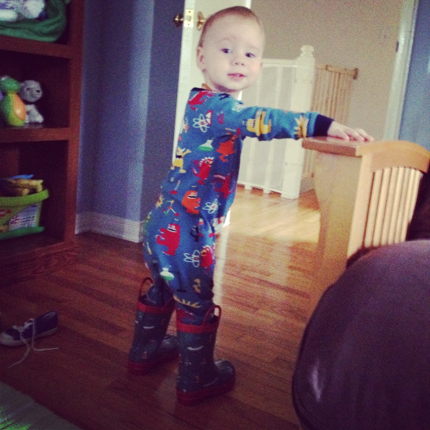 Here is what Ian was doing a year ago today. Today today’s obsession was more about boots and bacon.