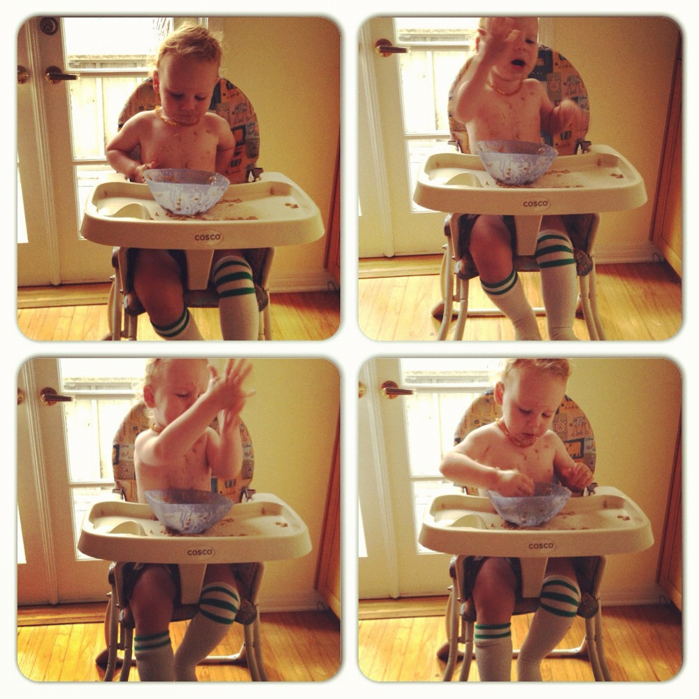 Wait for it. And if you want the recipe for this clearly delectable oatmeal, let me know. It involves almond milk, honey, cinnamon, banana, and almond butter. So good it’ll make you curse your mama. Or like your mama.