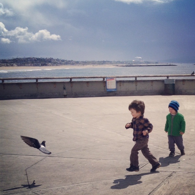 But not today. Today is Friday, dammit. Today mama felt well enough to venture out and Ian was a solid 90%. I prayed the entire drive that we have a “pleasant experience.” My prayers were answered. Easy parking, bright sun mixed with dramatic clouds, and most important, a new friend! They met at the beginning of the pier, took one look at each other, and took off running. He was with his grandma who was visiting from Chicago because he was a new big brother (baby girl born last week). We had such fun, ate an apple while watching the waves crash, and only cried once when mama wouldn’t let him walk without my hand in the parking lot. I’m trying my best over here.