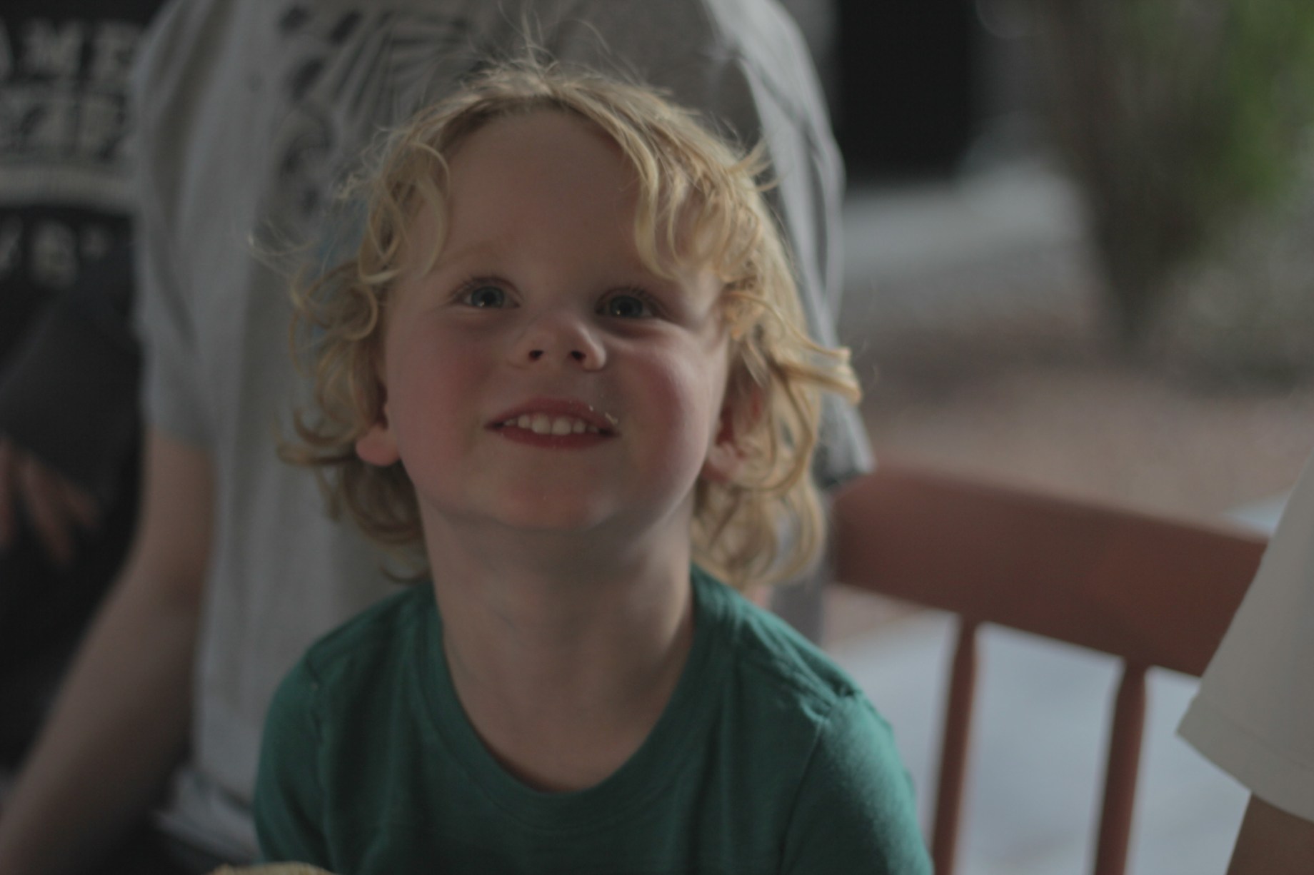 We don’t have sugar in the house, although I make plenty of sweet treats with maple syrup or coconut sugar. And we’ve noticed that when Ian is around real red dye number five high fructose corn syrup sugar, he LOVES it. All about it, and curiously, he doesn’t get hyper. He becomes sort of groovy (this is making me think of those people who can drink all day and not seem drunk; they’re called alcoholics). He likes to peddle candy to others when he’s not allowed anymore, and he’s a very persuasive salesman (“Look at this, it’s a red jelly bean, you should eat it, it’s so so yummy.”) He’s even sort of cool with candy limits. We won’t take candy away, but we make him wait and have one piece per day.