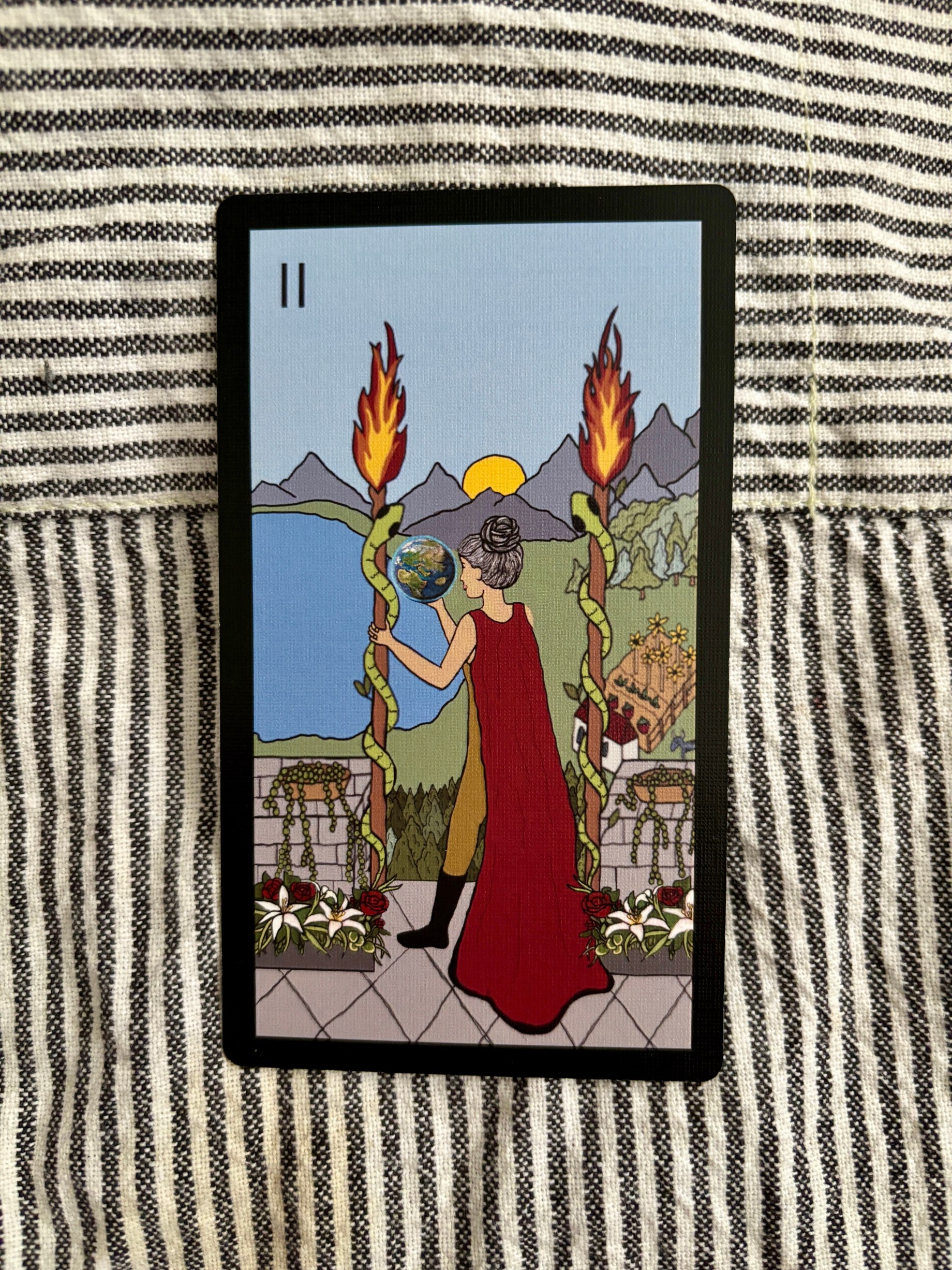 You said yes. You made a decision. The Two of Wands is letting you know you are off to a good start! Your personal power is clear and magnified. Planning and moving forward are supported with this card, as is travel. You literally have the world in your hands. You are strong. You are capable.