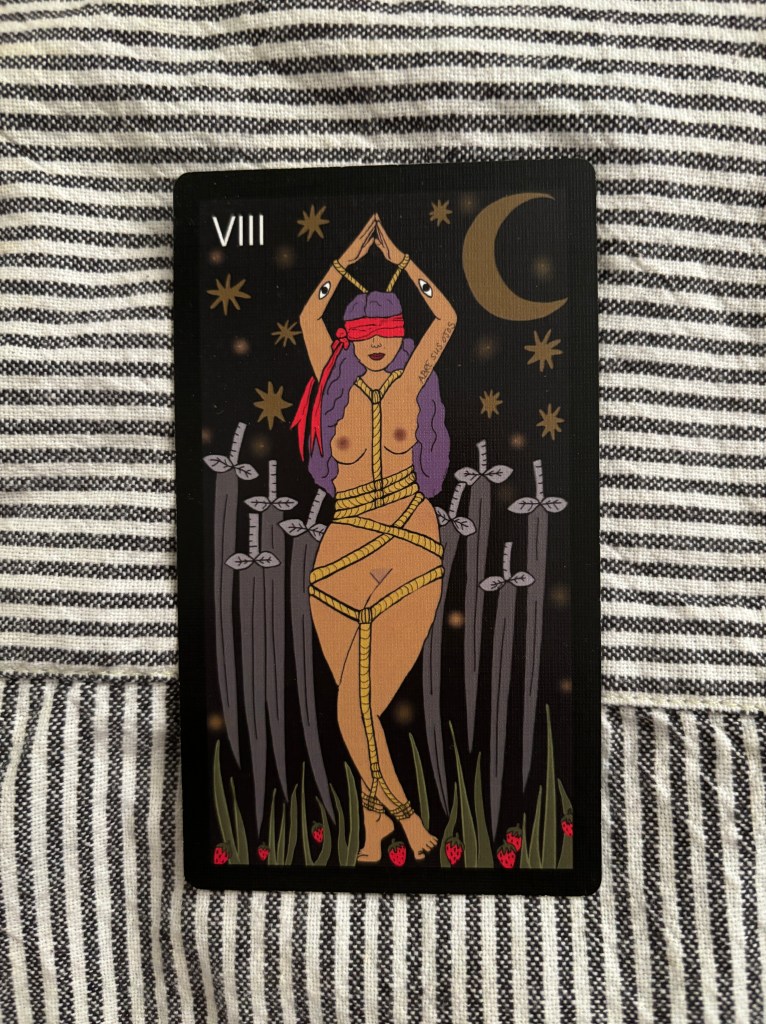 This card can go two ways; It can illustrate how you are feeling victimized or perhaps are stuck in a victim mentality OR it can be a reminder of what we are powerless over. The former can be a tough wake up call that no matter what we’ve been through, it is our responsibility to work through it and change our narrative. No one else can do it. The latter I find a comfort that really the only thing I have power over is me; how I respond, how I process, what I choose to make of my time on this plane. Everything else is out of my hands. Simple, not easy, medicine.