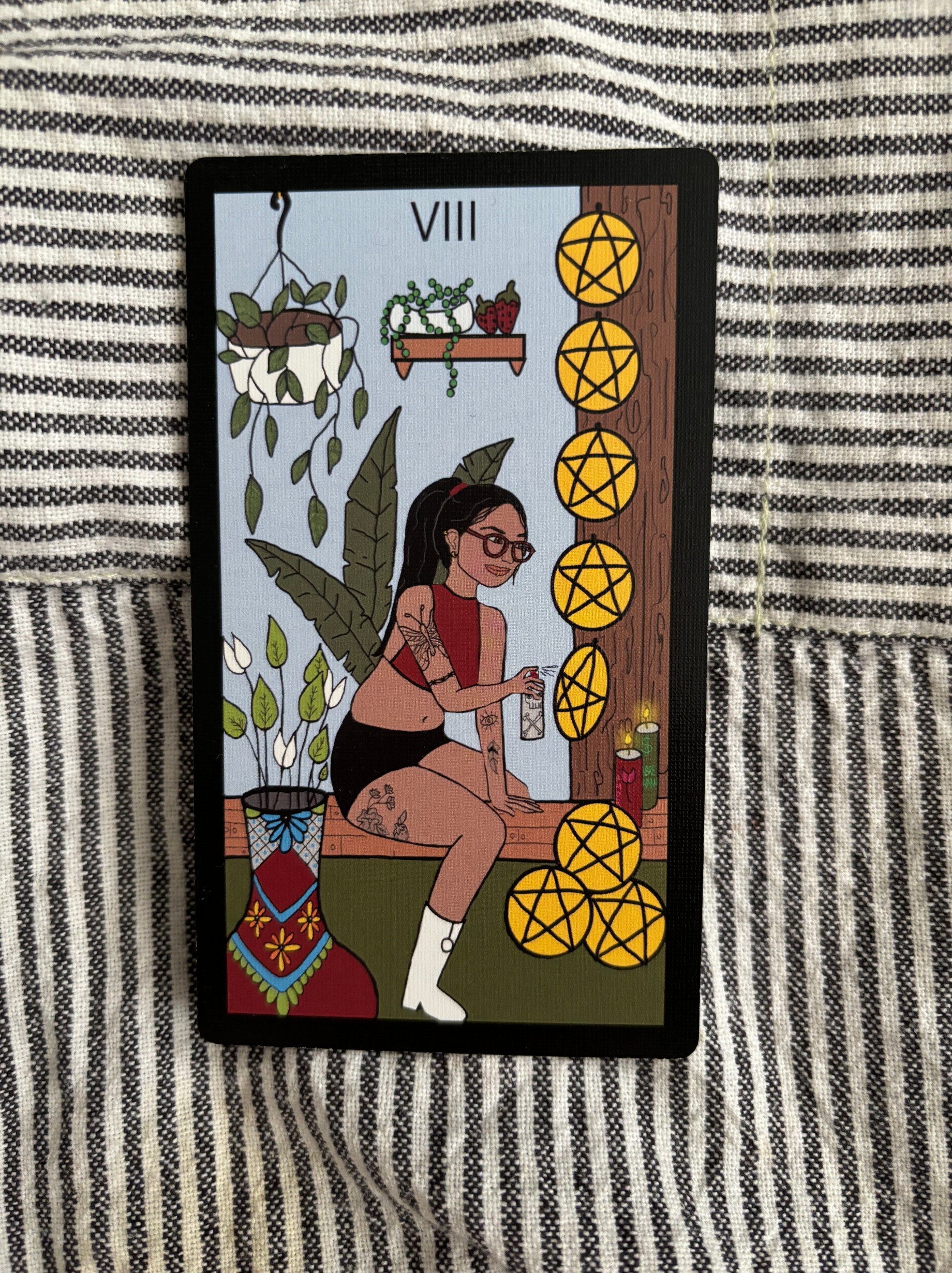 You are working hard. We see you. This card asks you to keep going, to focus on what you’re doing and to refine your skills. You are not quite mastering your craft yet, but you are CLOSE. Closer than you think. If you feel vague about what you’re doing or pursuing, this card suggests dream time is over, it’s time to do the thing. Study. Practice. Head down.