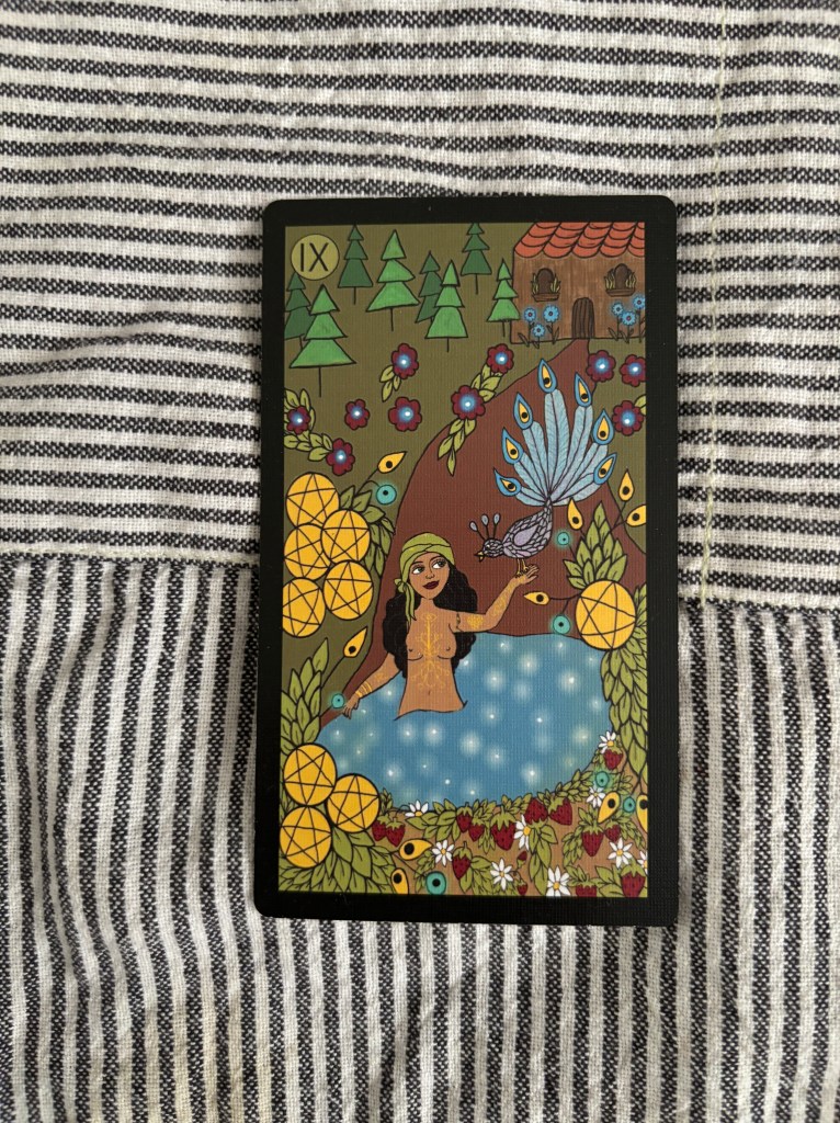 We love everything about the Nine of Pentacles, which signifies material success, prosperity, and independence. It also signifies that we achieved this success as a result of discipline. We did not happen upon this security. We created it with time and effort and showed up even when (perhaps especially when) we didn’t feel like it. Knowing how to show up when it’s not fun and easy, knowing that you can still do the thing even when you’re sad or tired or grieving, is incredibly empowering and fosters a sense of independence. Now go enjoy your private pool and enjoy your money trees. You’ve earned it!