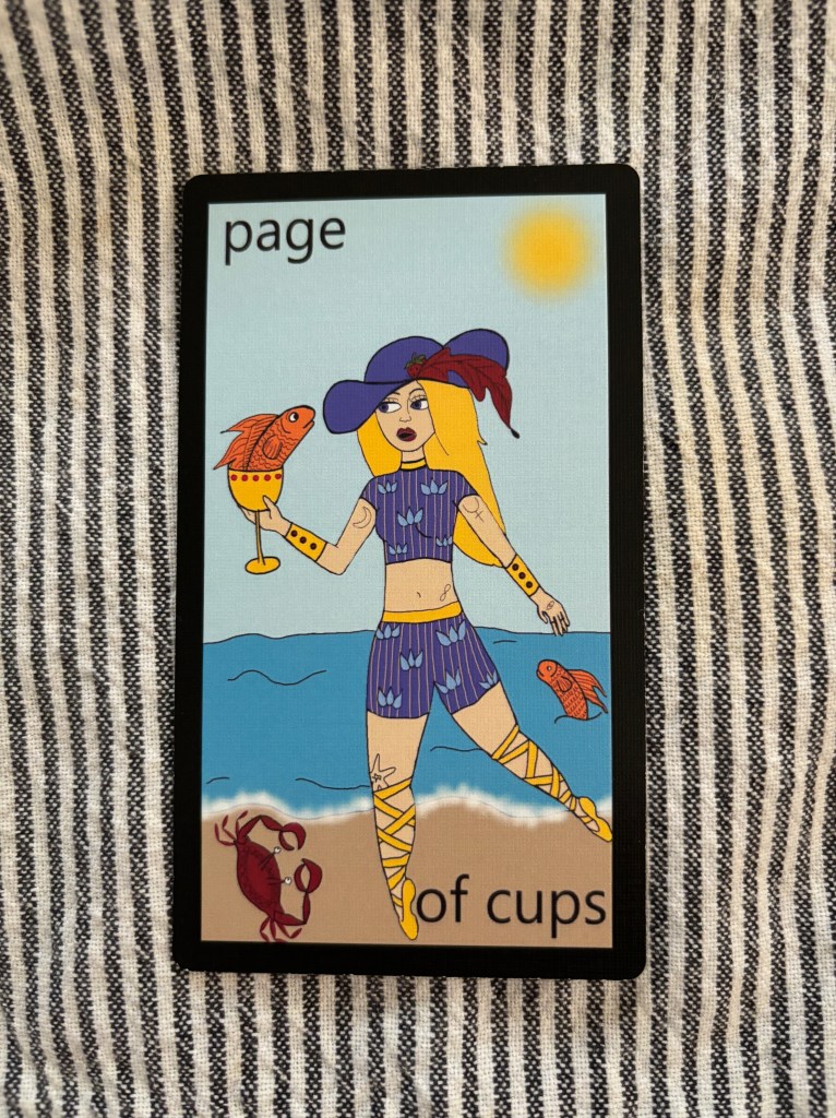 Water signifies emotions, moods coming and going, and expansion. When we get to the Page, we have already been on a journey of knowing and maturing when it comes to our emotions, and now we can relax a bit and let ourselves play. You know what you need and how to take care of yourself and with that comes great freedom.