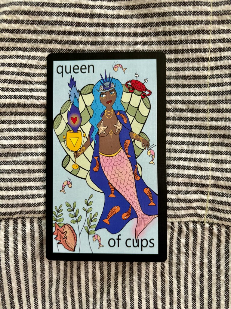 Psychic vibes. Your highest intuition/inner knowing. This card brings compassion and nurturing. This is the mom we all want and deserve. High emotional intelligence is at play. If this card comes up in answer to a question, listen to that still small voice. If you are unclear, write to your higher self and ask what they would have you know. Let the answer flow from you.
