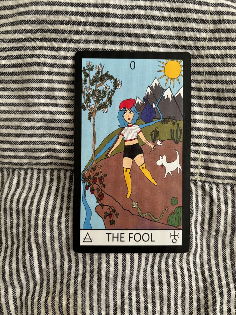 Be Here. NOW. Present. This card invites us to let go of the past (ALL of it) as well as the fantasies and/or trepidation of the future (ALL of that as well). I associate the first card of the deck, card zero, with being freshly born. We do not know resentment or regret or hatred or fear. Our entire reality is based only on what is happening in the given moment. What do you see right now? What do you hear right now? How would you move in the world if only this moment existed? The Fool wants you to be free and playful, and to take that seriously because this is a very important concept. Peace lives in the present.