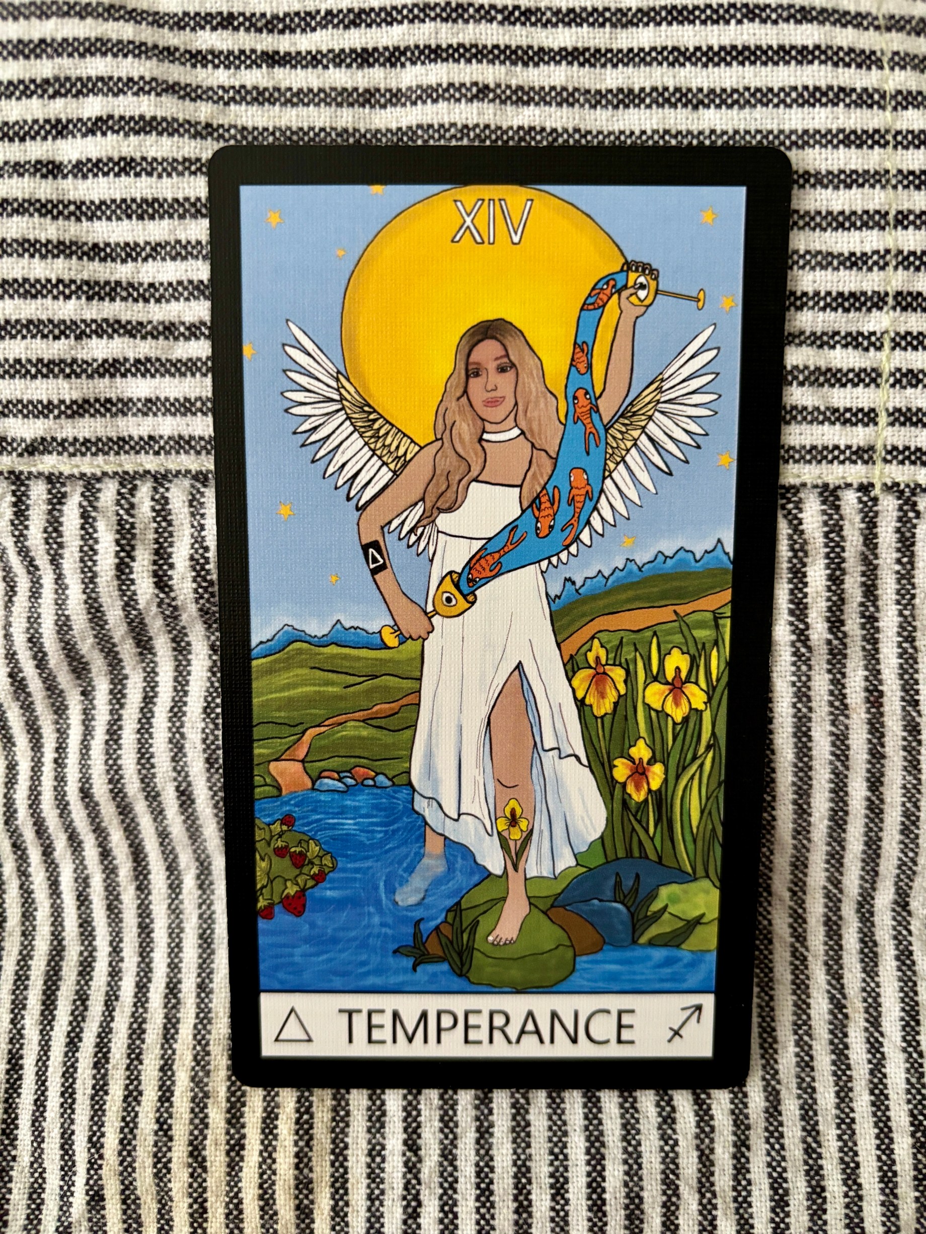 Balance. Peace. Harmony. If you pull Temperance, the answer to your question is to breathe and ground yourself. Let’s take a look at her. The first thing I notice is all of the elements are represented. She has one foot in the water (feelings), the other foot on a rock (earth, what is tangible). She has wings (air, thought and communication) and the bright sun at her back (fire, passion and inspiration). When we balance our elements, we are peaceful. We are calm. We proceed with clarity. What is extreme in your life today, and how can you make things a bit more even?