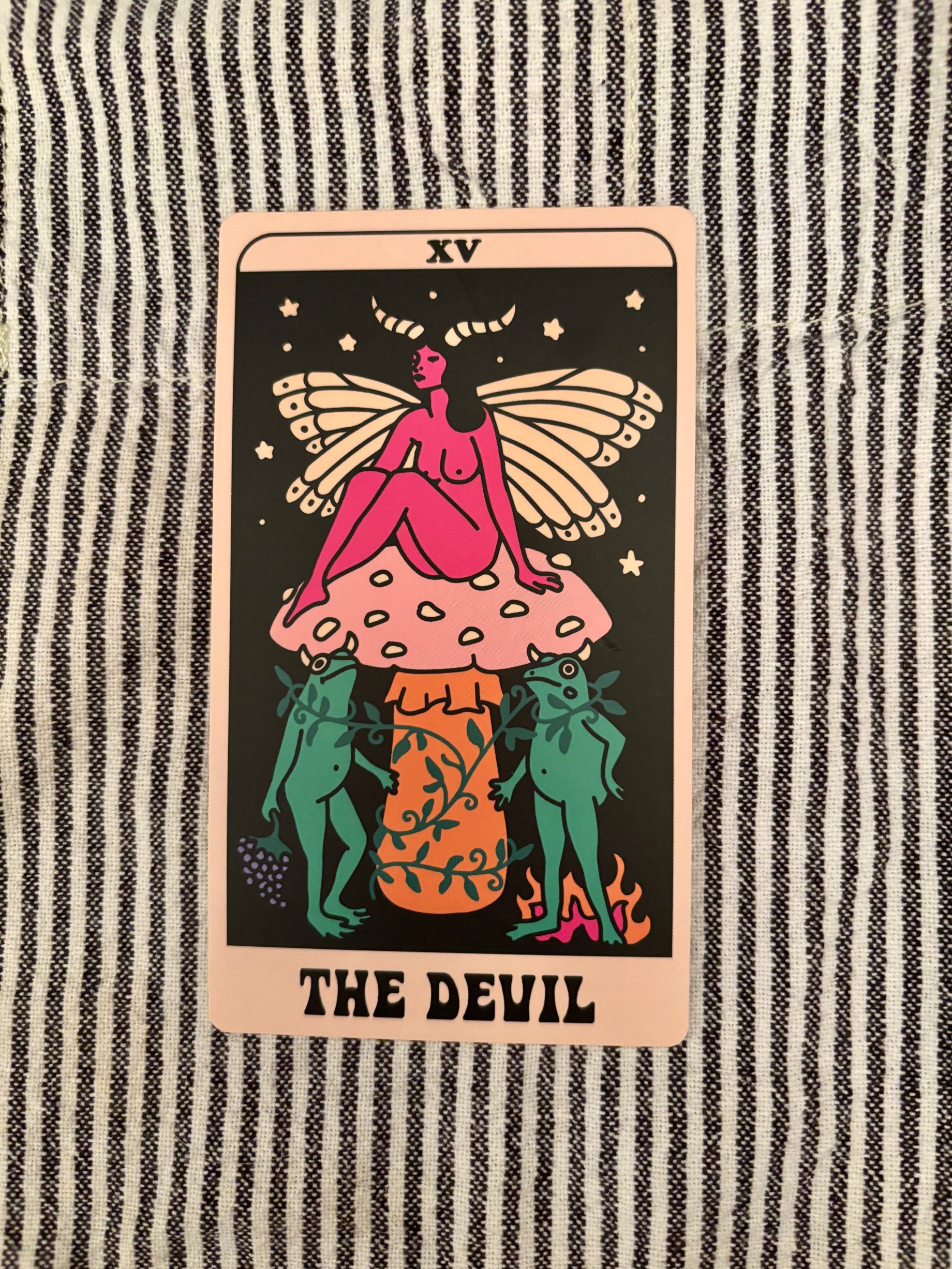 The Devil card also speaks to earthly temptations that we think will make us happy but actually do the opposite: Focusing on wanting more more more while not appreciating what we already have. Hating our own body that carries us while we lust after someone whose appearance seems “perfect.” Staying in unhealthy relationships because we fear what being alone will mean…