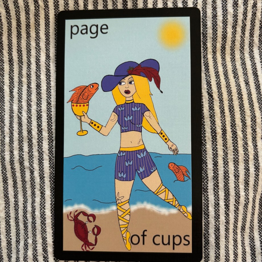 The Page of Cups encourages embracing intuition and emotional maturity. Representing innocence and creativity, it invites self-reflection and listening to one’s inner voice. This card signifies a journey toward self-awareness, promoting playfulness and the freedom that comes from understanding one’s emotional needs. Embrace your feelings and trust your instincts.